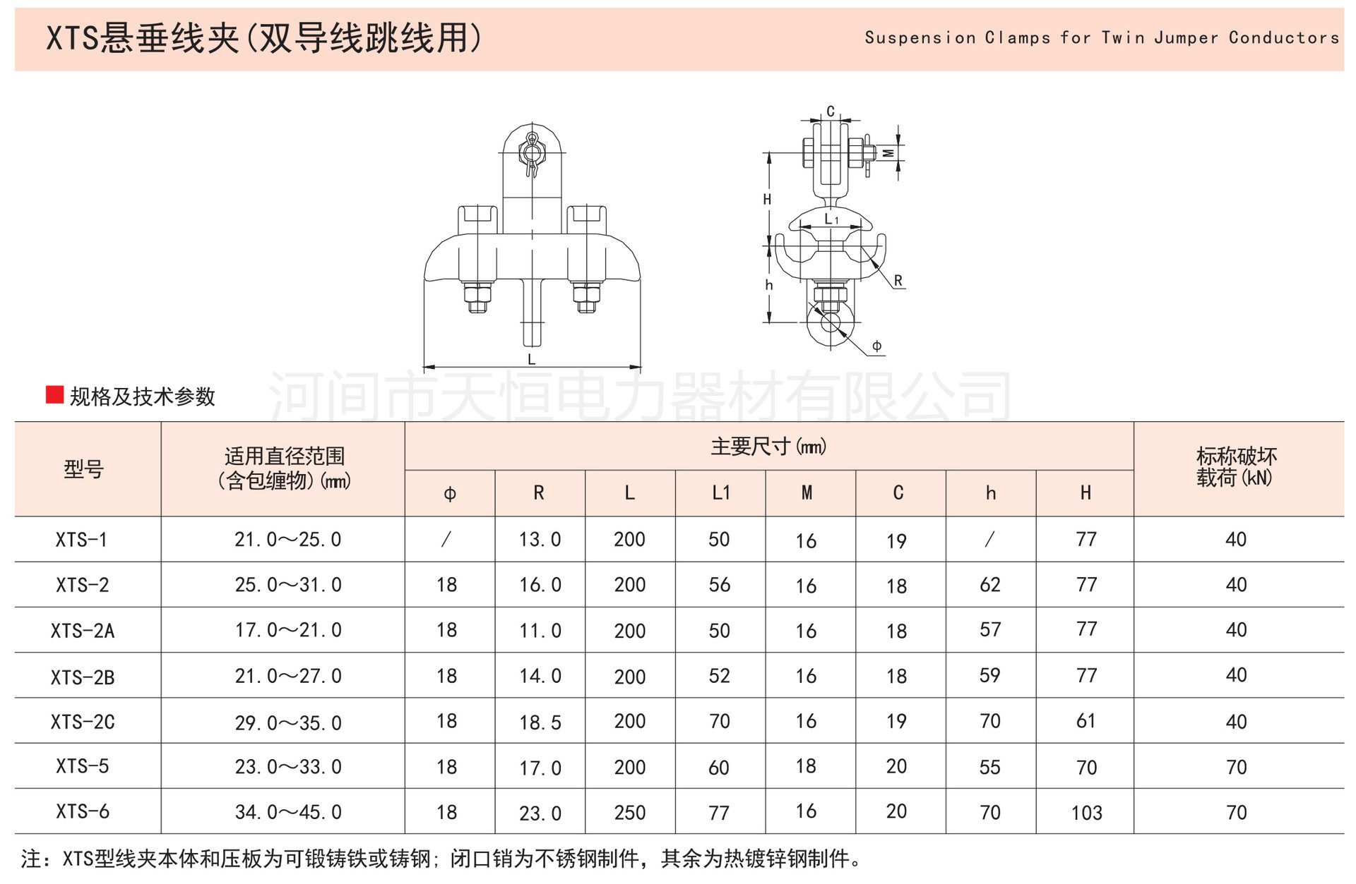 雙導(dǎo)線跳線懸垂線夾XTS-6034常有的定型產(chǎn)品,現(xiàn)在保留了U型螺栓式樣(通常叫船型線夾),它是由掛架U型螺栓,可鍛鑄鐵制造的線夾船體、壓板組成。另一種就是預(yù)絞式懸垂線夾。懸垂線夾用于將導(dǎo)線固定在直線桿塔的絕緣子串上,或?qū)⒈芾拙€懸掛在直線桿塔上,亦可用于換位桿塔上支持換位導(dǎo)線以及耐張轉(zhuǎn)角桿塔跳線的固定。