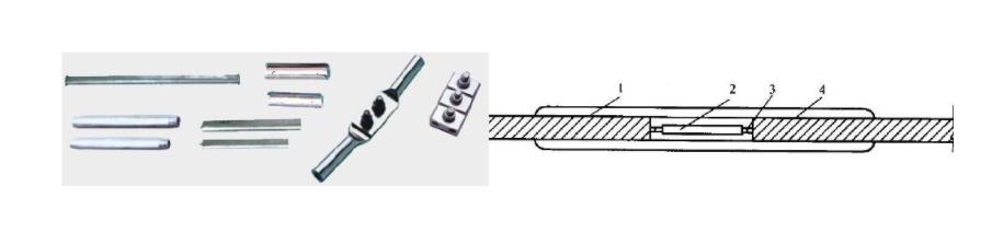接續(xù)金具用于連接導線及避雷線終端,接續(xù)非直線桿塔的跳線及補修損傷斷股的導線或避雷線。架空線路常用的連接金具有鉗接管、壓板管、補修管、并溝線夾及跳線夾等。